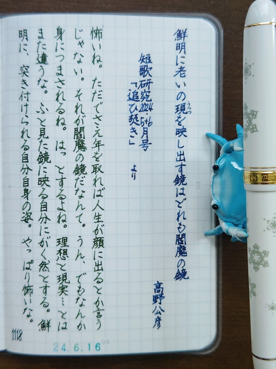 [今日の短歌/高野公彦]鮮明に老いの現(うつつ)を映し出す鏡はどれも閻魔の鏡