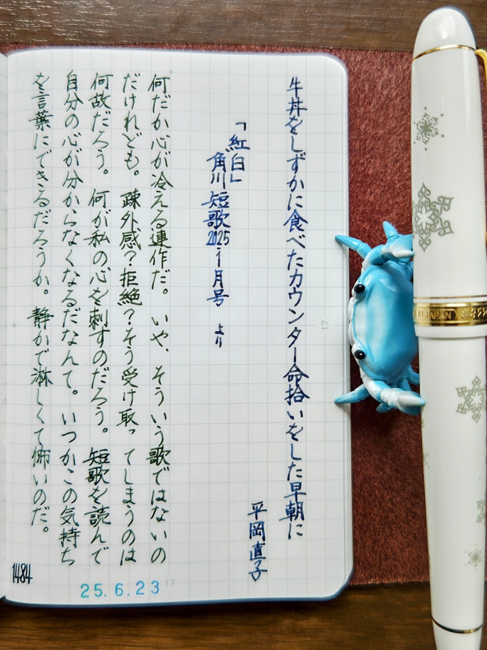 [今日の短歌/平岡直子]牛丼をしずかに食べたカウンター命拾いをした早朝に