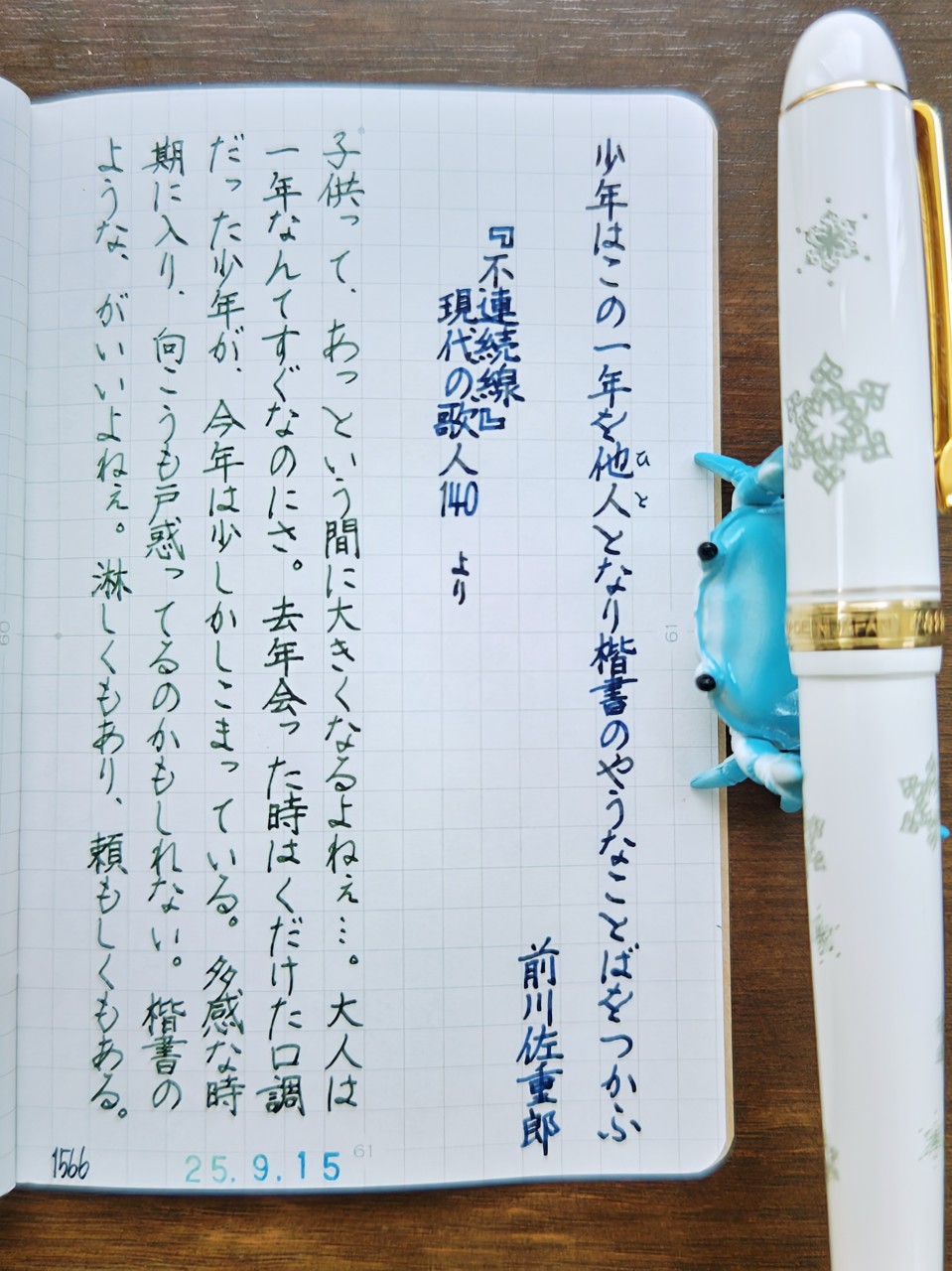 少年はこの一年を他人(ひと)となり楷書のやうなことばをつかふ/前川佐重郎