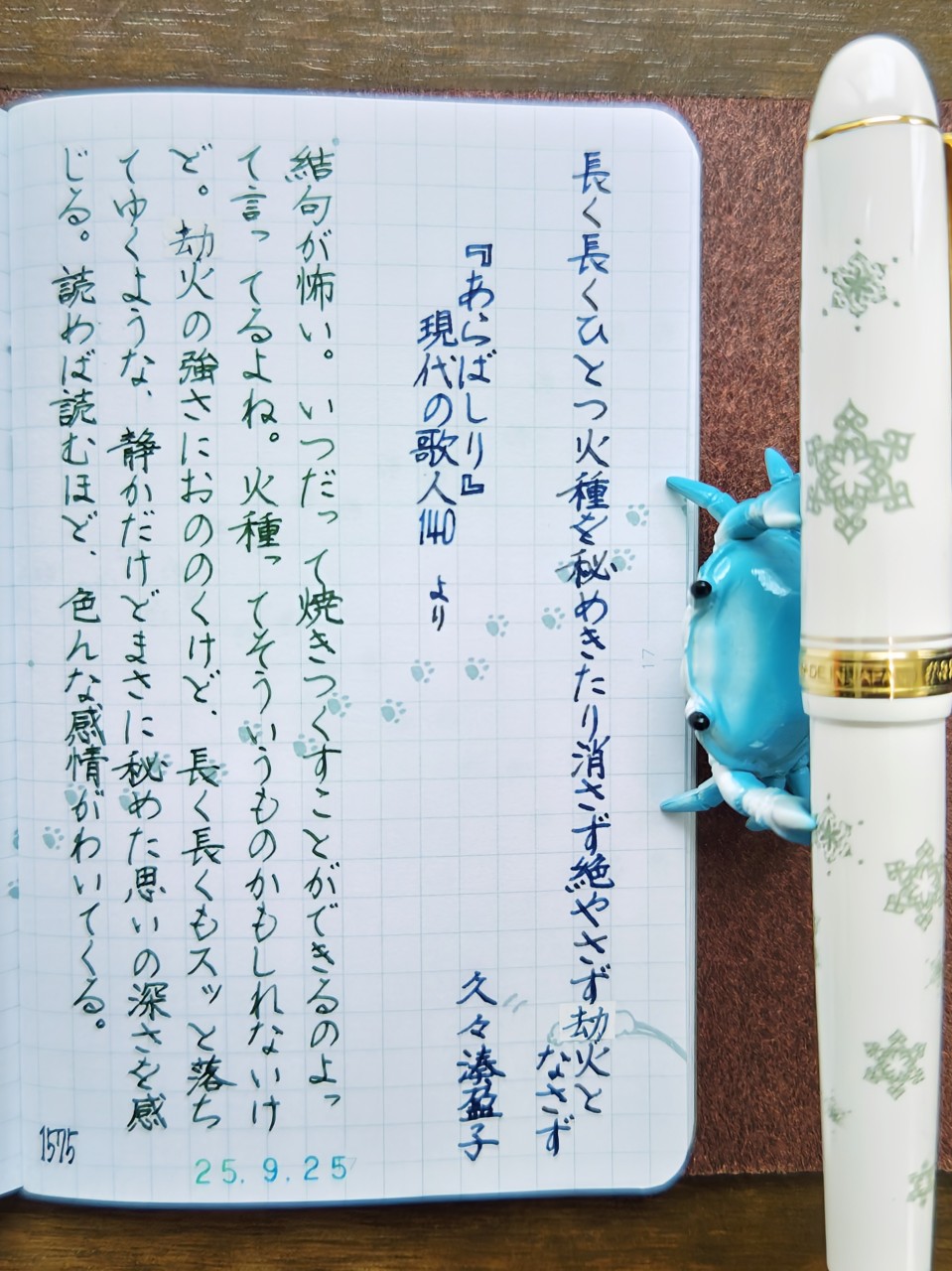 長く長くひとつ火種を秘めきたり消さず絶やさず劫火となさず/久々湊盈子
