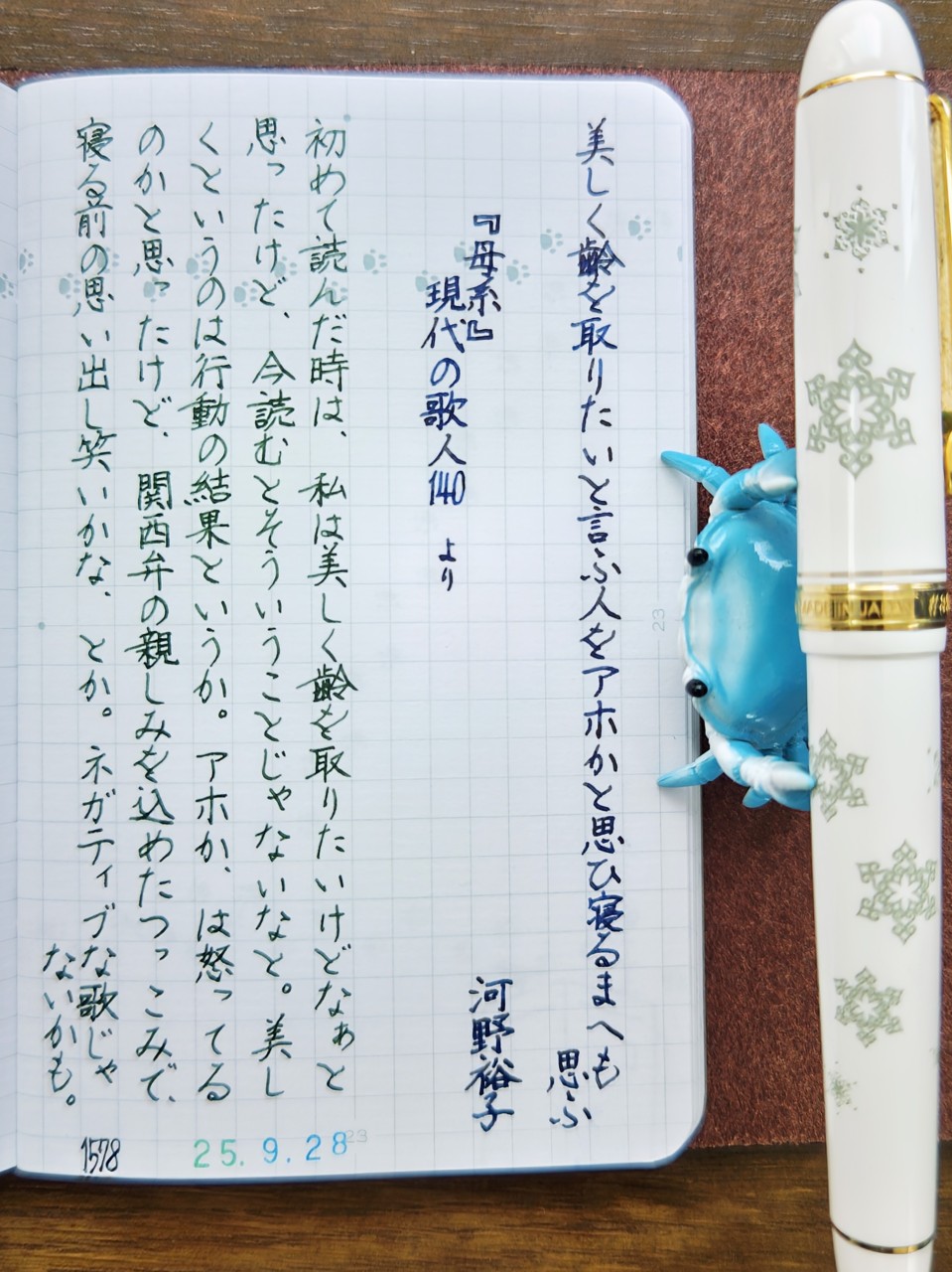 [今日の短歌/河野裕子]美しく齢を取りたいと言ふ人をアホかと思ひ寝るまへも思ふ