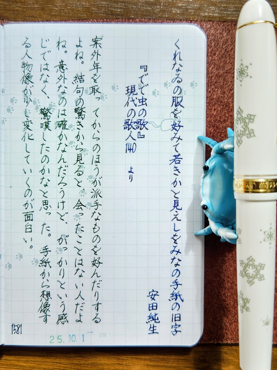 [今日の短歌/安田純生]くれなゐの服を好みて若きかと見えしをみなの手紙の旧字