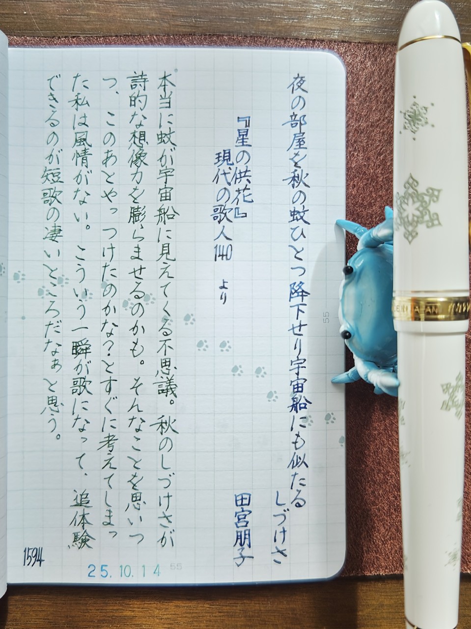 夜の部屋を秋の蚊ひとつ降下せり宇宙船にも似たるしづけさ/田宮朋子
