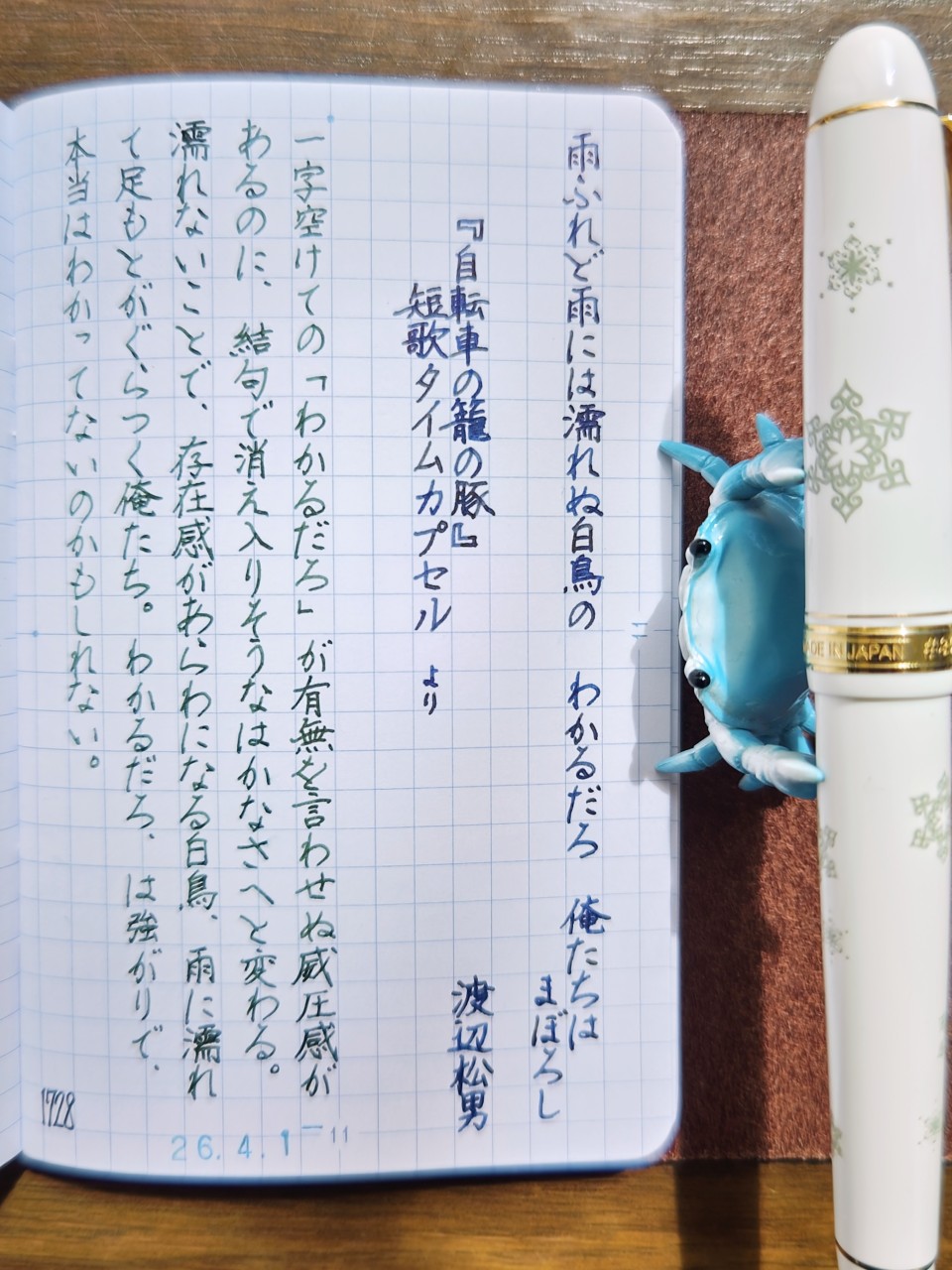 [今日の短歌/渡辺松男]雨ふれど雨には濡れぬ自鳥の わかるだろ 俺たちはまぼろし