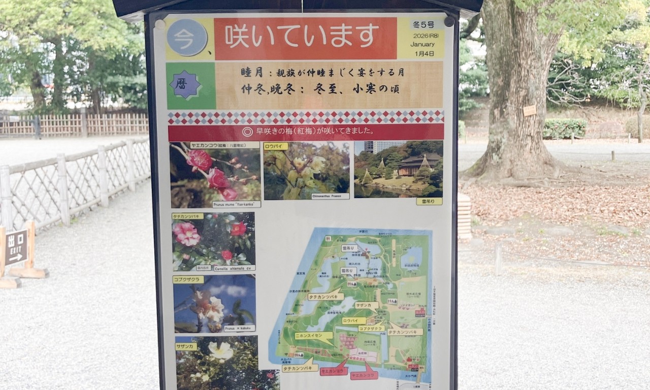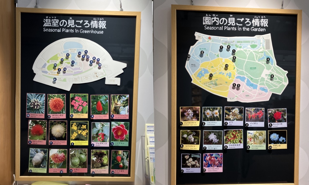 入園前にこれをスマホで撮っておくと便利です。たまーに「あれれ?無いやん」「ちょっと位置がズレてるやん」ということもありますが笑、かなりリアルタイムです。御苑は広いのでこの地図でも見つけるのに苦労することがありますが、見つけた時はウレシイです。