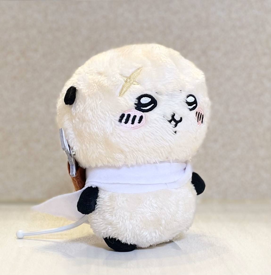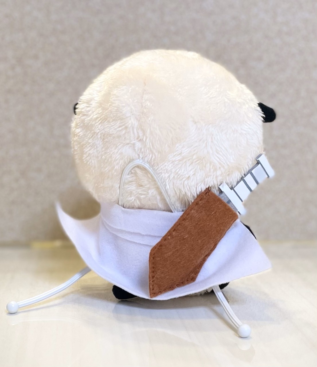 今月の初めに購入したちいかわのラッコのぬいぐるみ、こちらは剣を手に持った状態が通常です。なので、剣を取り外しできるようにしました。